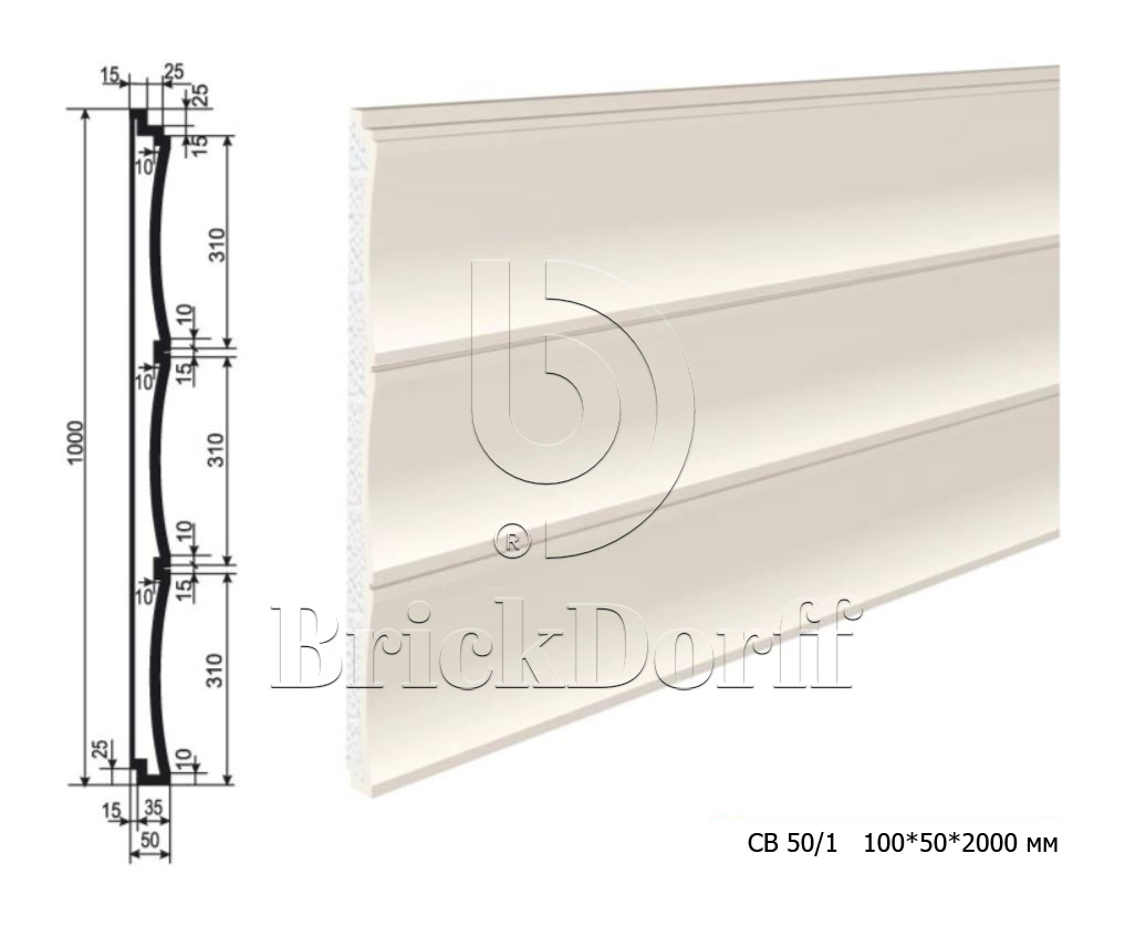 Панель утепления под покраску для фасада - изосайдинг из пенополистирола СВ-50/1 1000*50*2000 мм