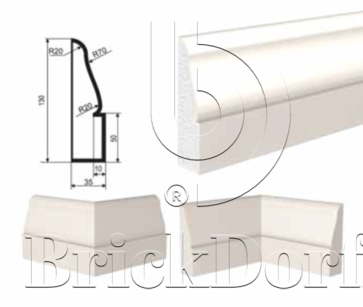 Эта лепнина эластична, без проблем монтируется на изогнутых поверхностях, хорошо переносит усадку здания и отлично окрашивается силиконовыми или акриловыми фасадными красками, не содержащими растворитель и ацетон.