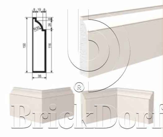 МОЛДИНГ цокольный для Фасада и Интерьера - лепнина, декор из пенополистирола ЦВ-150/1 150*35*2000 мм