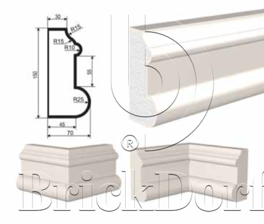 Лепнина для фасада и интерьера из вспененного полистирола с покрытием из эластичной шпатлёвки-штукатурки.