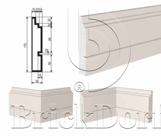 МОЛДИНГ цокольный для Фасада и Интерьера - лепнина, декор из пенополистирола ЦВ-170/2 170*30*2000 мм
