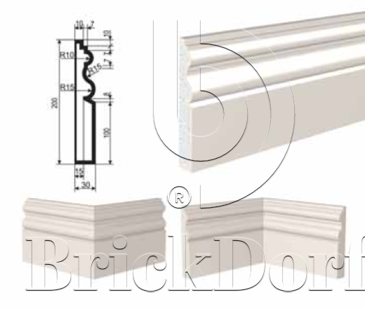 МОЛДИНГ цокольный для Фасада и Интерьера - лепнина, декор из пенополистирола ЦВ-200/1 200*30*2000 мм