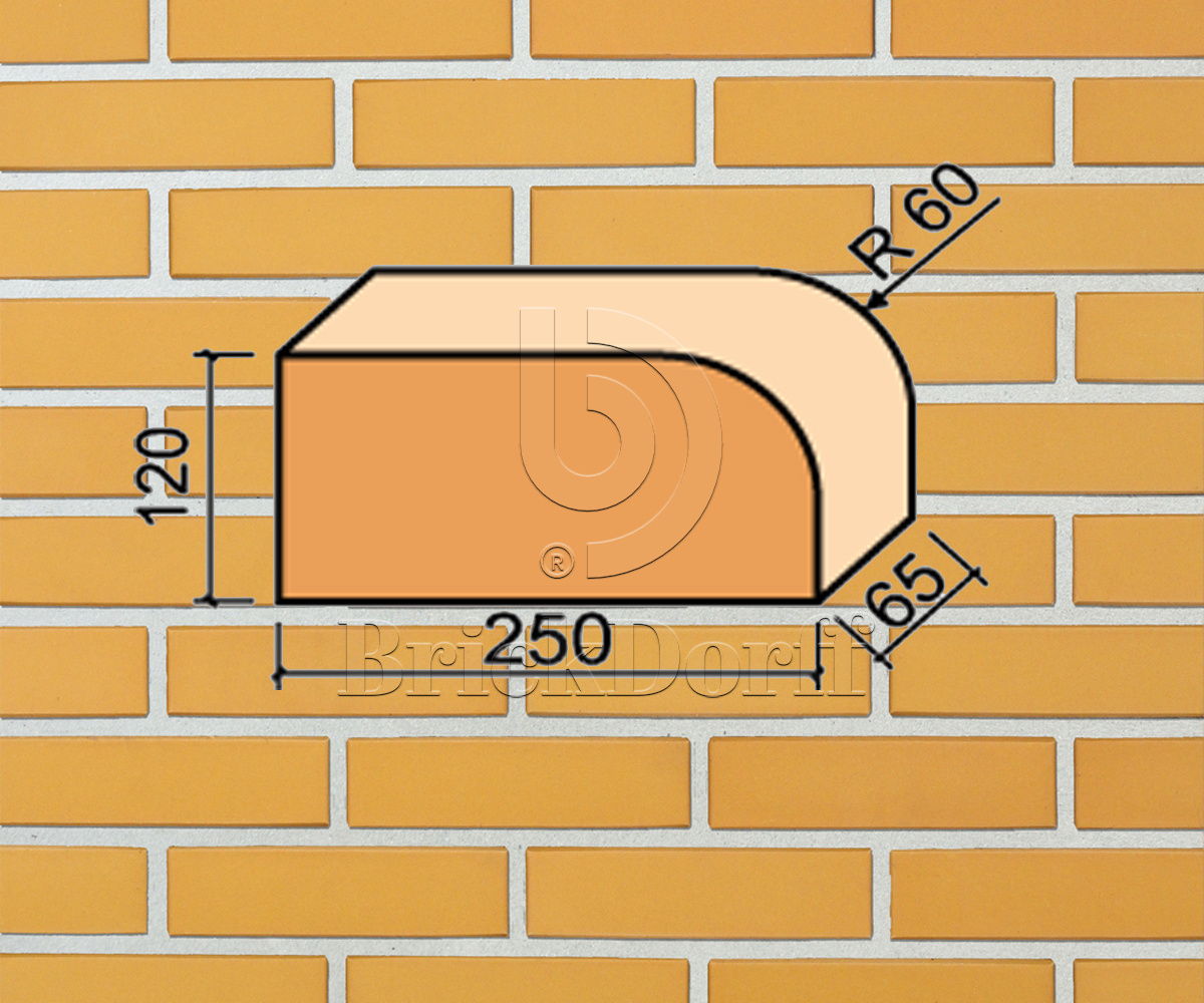 12.321115L Кирпич радиусный полнотелый темно-желтый Lode DZINTRA F15 гладкий, 250*120*65 мм