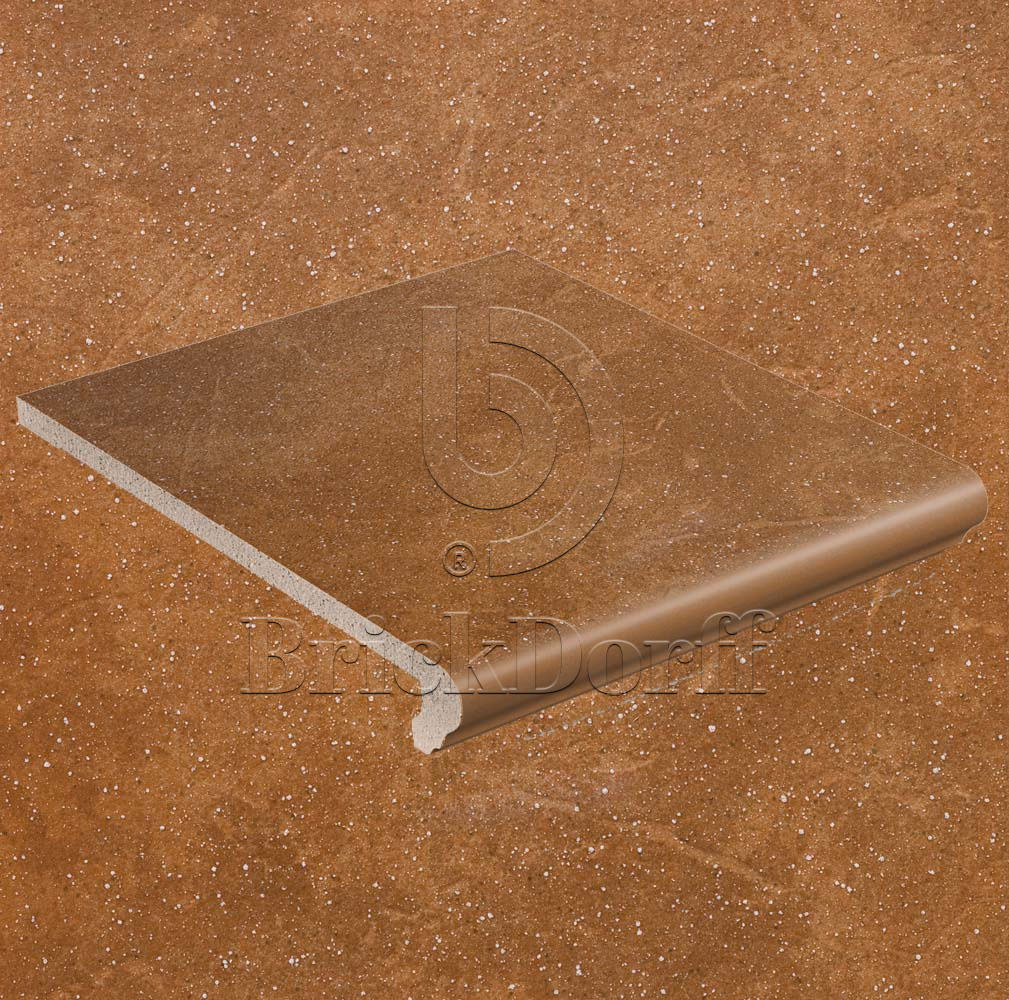 Клинкерная ступень флорентинер противоскользящая плитка Stroeher KERAPLATTE ROCCIA 839 ferro 340*294*12 мм