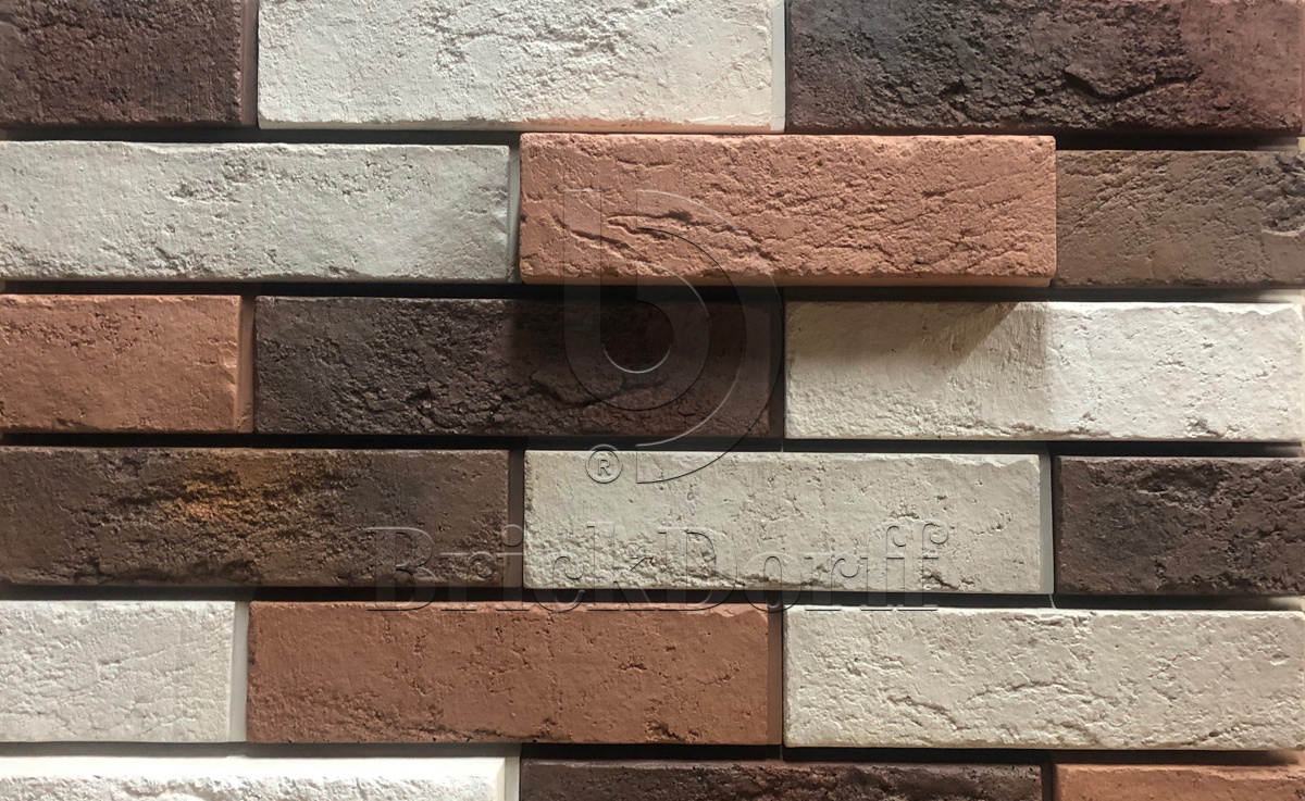 Бонн-12mix Плитка под кирпич для навесного вент фасада без расшивки шва 253X68X26 мм искусственный камень