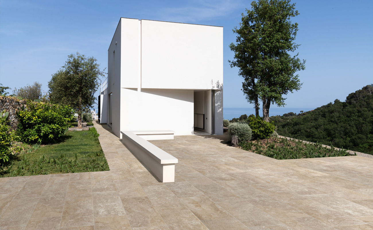 Крупноформатная фасадная плитка для цоколя и стен