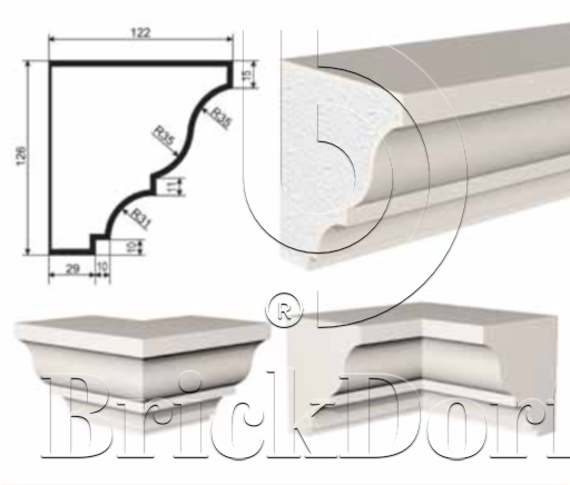 КАРНИЗ для Фасада и Интерьера - лепнина, декор из пенополистирола КВ-126/1 126*122*2000 мм