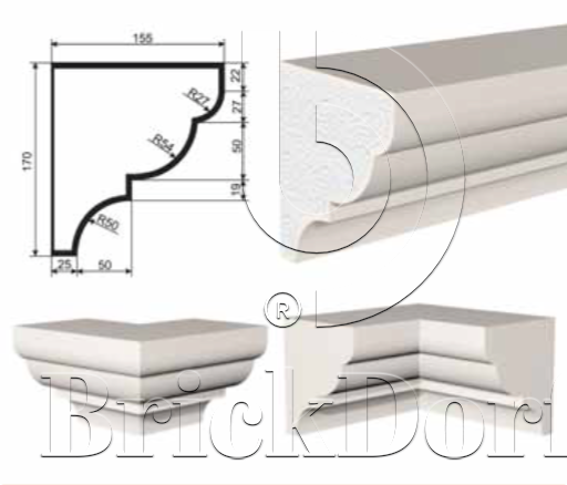 КАРНИЗ для Фасада и Интерьера - лепнина, декор из пенополистирола КВ-170/4 (КС-103) 170*155*2000 мм