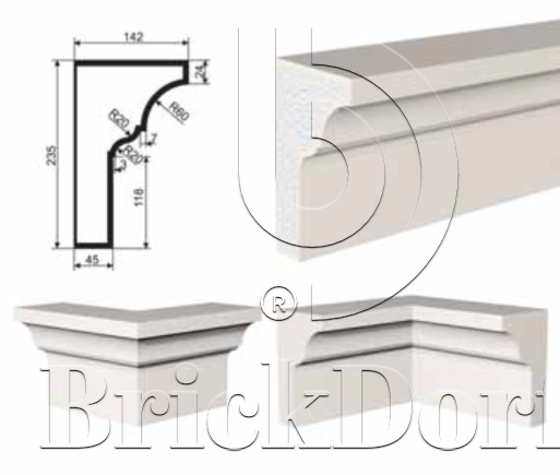 КАРНИЗ для Фасада и Интерьера - лепнина, декор из пенополистирола КВ-235/1 235*142*2000 мм
