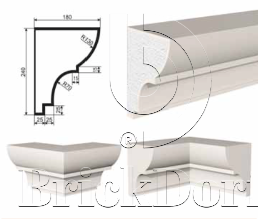 КАРНИЗ для Фасада и Интерьера - лепнина, декор из пенополистирола КВ-240/2 240*180*2000 мм