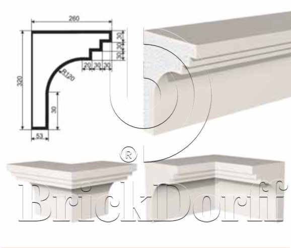 Лепнина для фасада и интерьера из вспененного полистирола с покрытием из эластичной шпатлёвки-штукатурки.