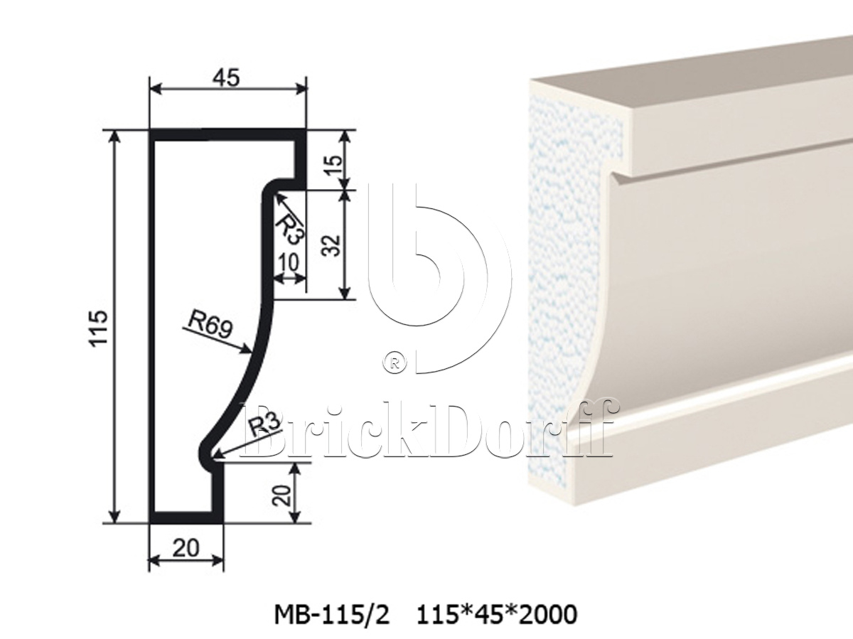 Молдинг для фасада - лепнина, декор из пенополистирола МВ-115/2 115*45*2000 мм