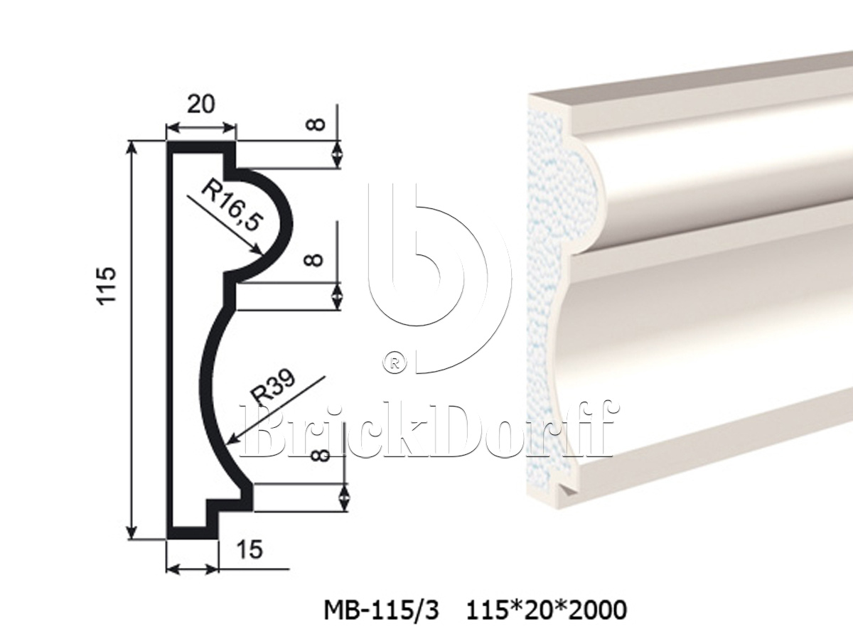 Молдинг для фасада - лепнина, декор из пенополистирола МВ-115/3 115*35*2000 мм