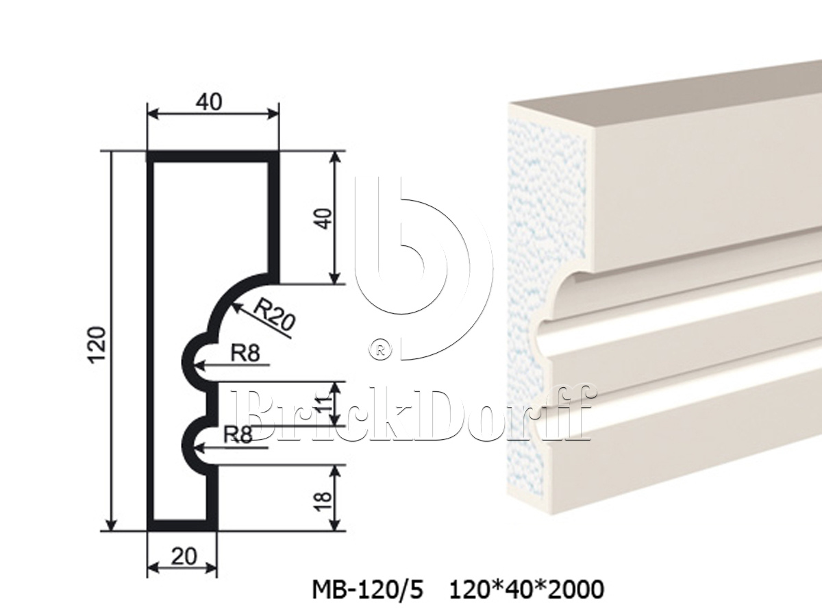 Молдинг для фасада - лепнина, декор из пенополистирола МВ-120/5 (МС-116) 120*40*2000 мм