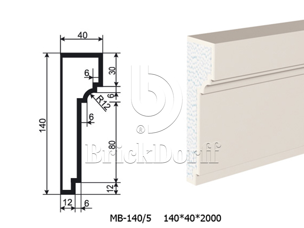 Молдинг для фасада - лепнина, декор из пенополистирола МВ-140/5 140*40*2000 мм