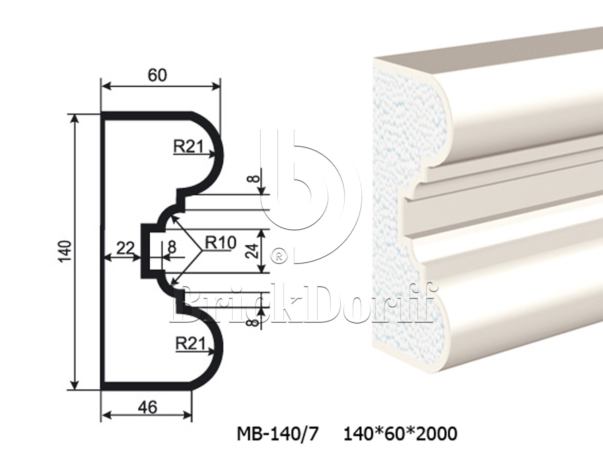 Молдинг для фасада - лепнина, декор из пенополистирола МВ-140/7 (МС-121) 140*60*2000 мм