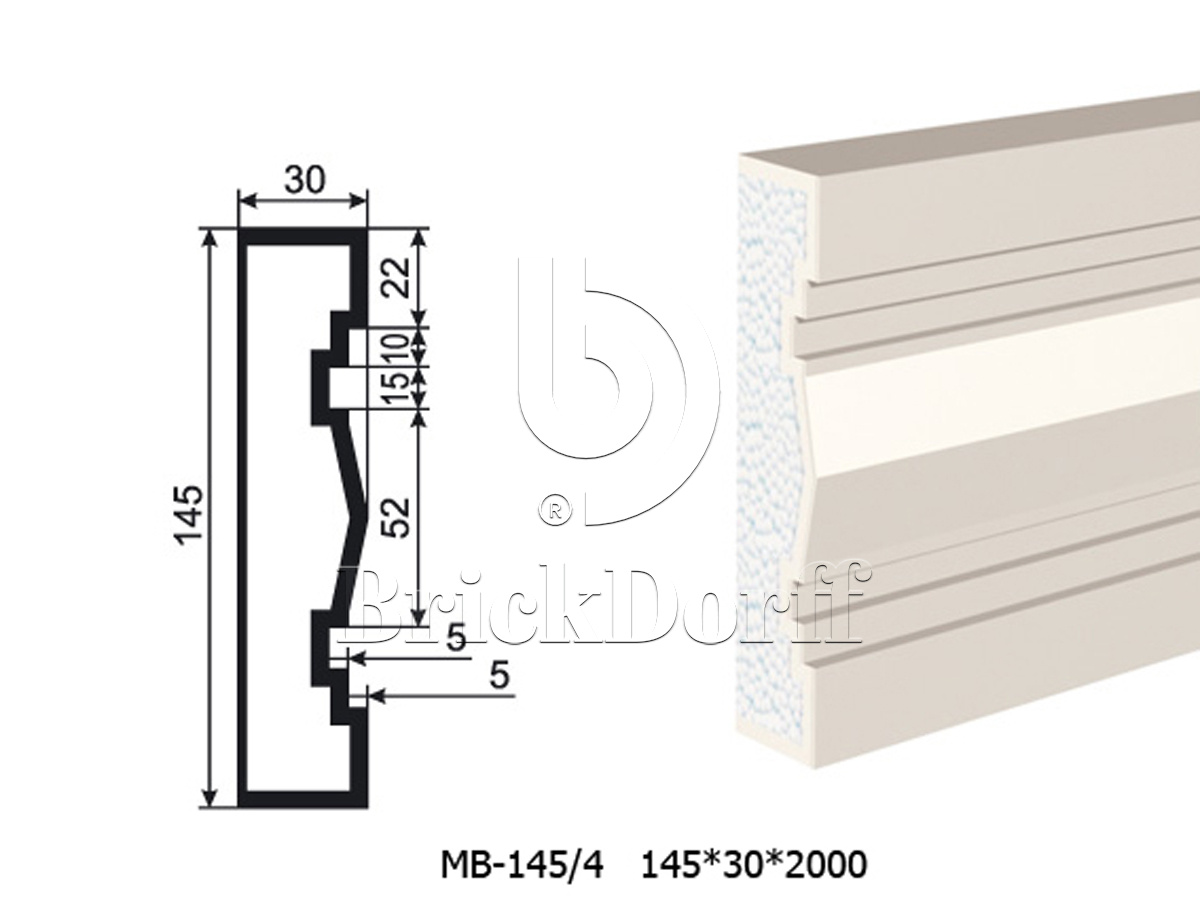 Молдинг для фасада - лепнина, декор из пенополистирола МВ-145/4 145*30*2000 мм