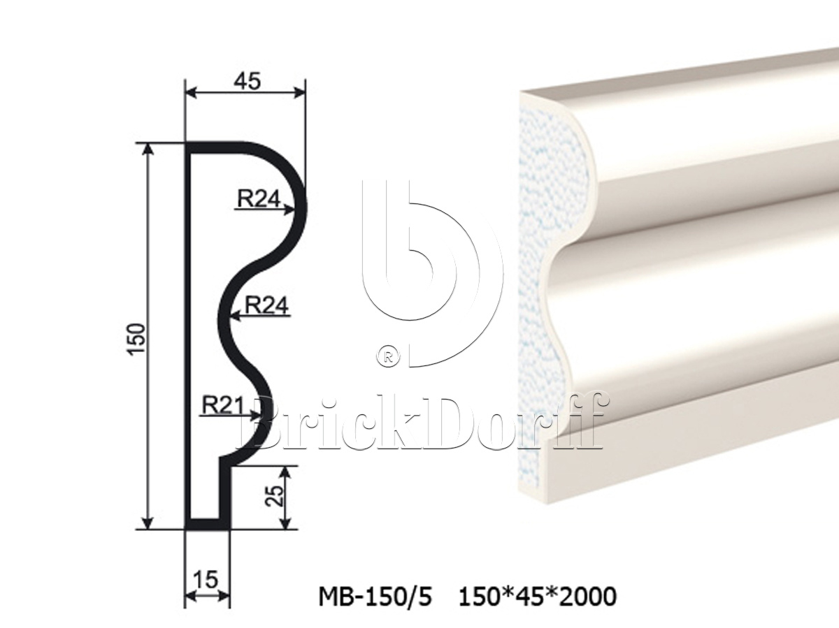 Молдинг для фасада - лепнина, декор из пенополистирола МВ-150/5 150*45*2000 мм