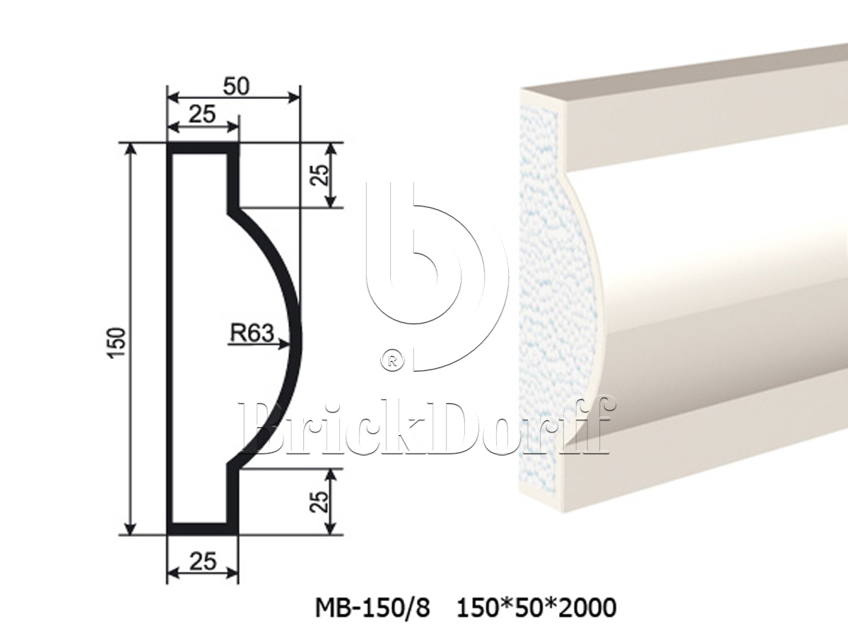 Молдинг для фасада - лепнина, декор из пенополистирола МВ-150/8 150*50*2000 мм