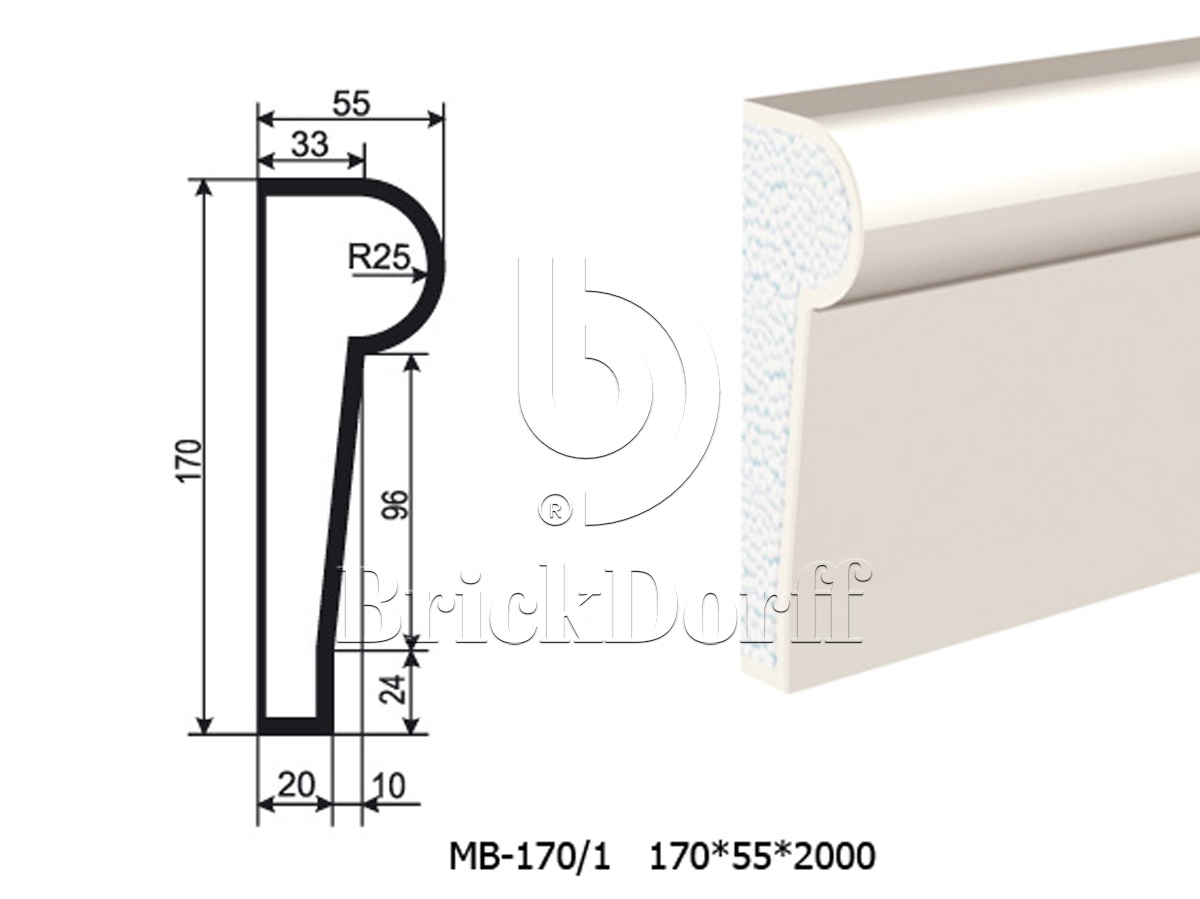 Молдинг для фасада - лепнина, декор из пенополистирола МВ-170/1 (МС-132) 170*55*2000 мм