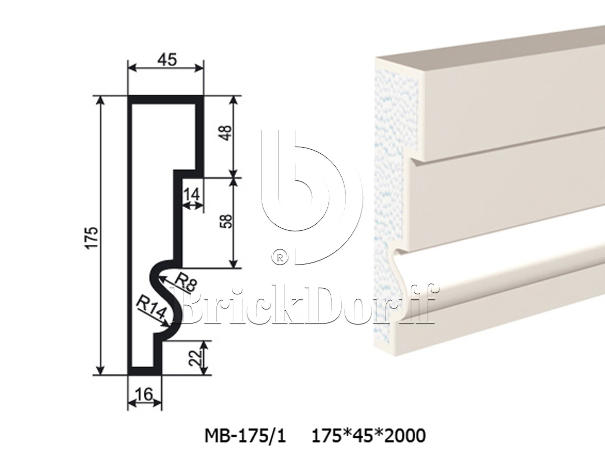 Молдинг для фасада - лепнина, декор из пенополистирола МВ-175/1 (МС-134) 175*45*2000 мм