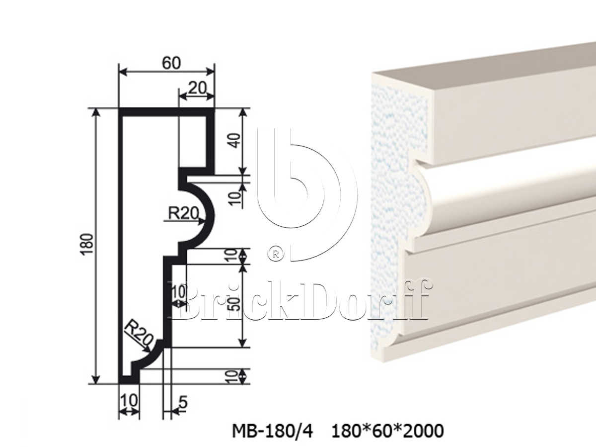 Молдинг для фасада - лепнина, декор из пенополистирола МВ-180/4 180*60*2000 мм