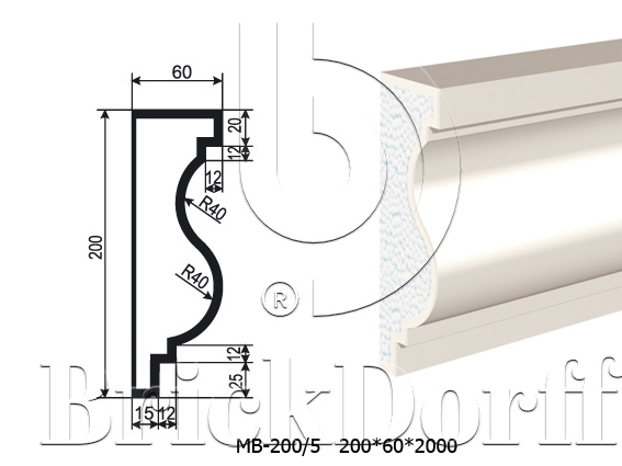 Молдинг для фасада - лепнина, декор из пенополистирола МВ-200/5 200*60*2000 мм