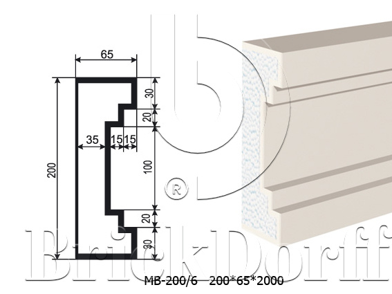 Молдинг для фасада - лепнина, декор из пенополистирола МВ-200/6 200*65*2000 мм