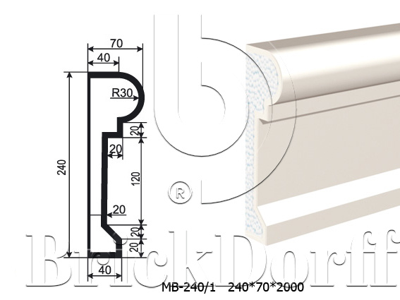 Молдинг для фасада - лепнина, декор из пенополистирола МВ-240/1 (МС-141) 240*70*2000 мм