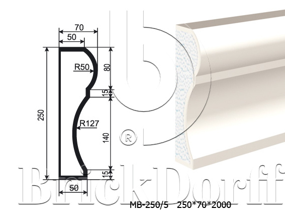 Молдинг для фасада - лепнина, декор из пенополистирола МВ-250/5 250*70*2000 мм