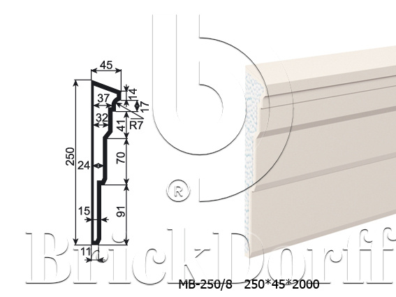 Молдинг для фасада - лепнина, декор из пенополистирола МВ-250/8 250*45*2000 мм