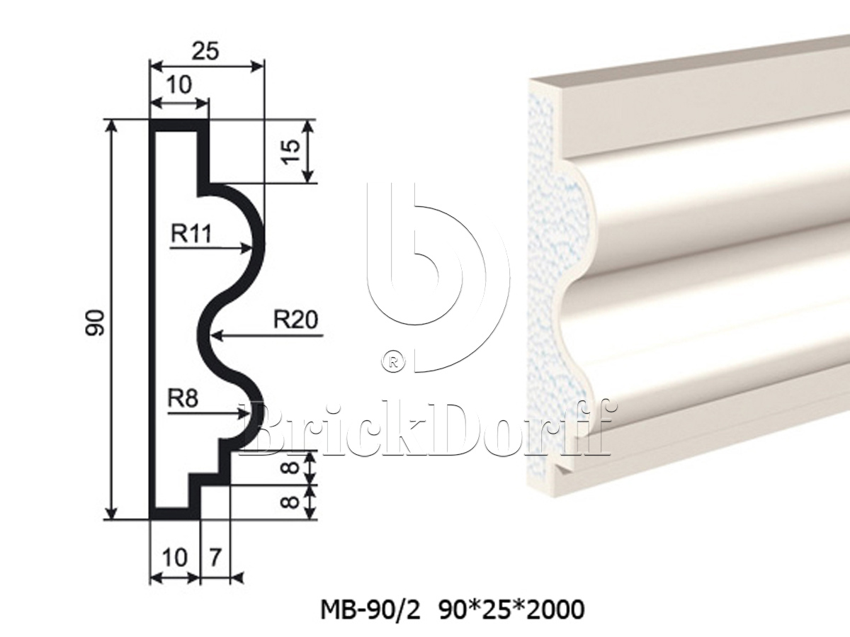 Молдинг для фасада - лепнина, декор из пенополистирола МВ-90/2 (МС-106) 90*25*2000 мм