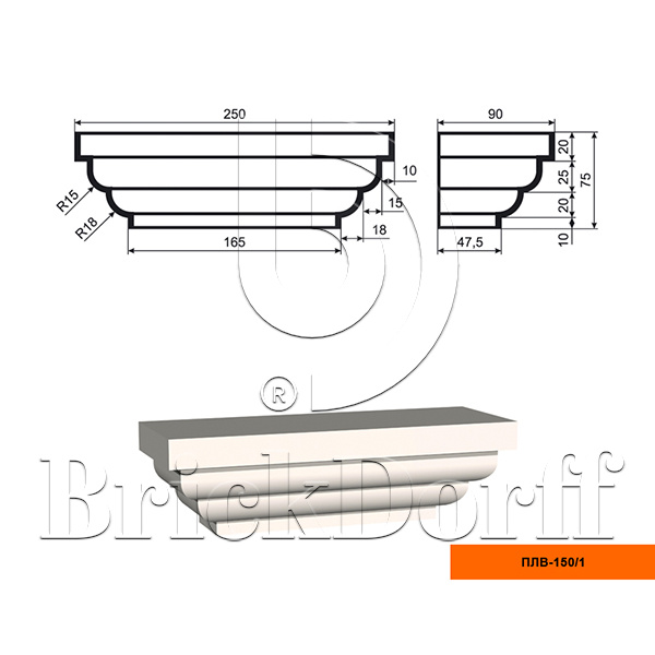 150/1 Капитель пилястры для фасада - лепнина, декор из пенополистирола ПЛВ-150/1 90*75*250 мм