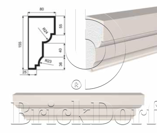 ПОДОКОННИК для Фасада и Интерьера - лепнина, декор из пенополистирола ПВ-155/3 155*80*2000 мм