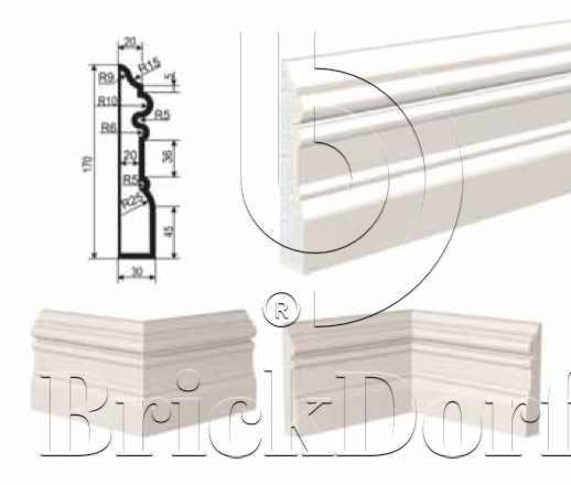 МОЛДИНГ цокольный для Фасада и Интерьера - лепнина, декор из пенополистирола ЦВ-170/1 170*30*2000 мм