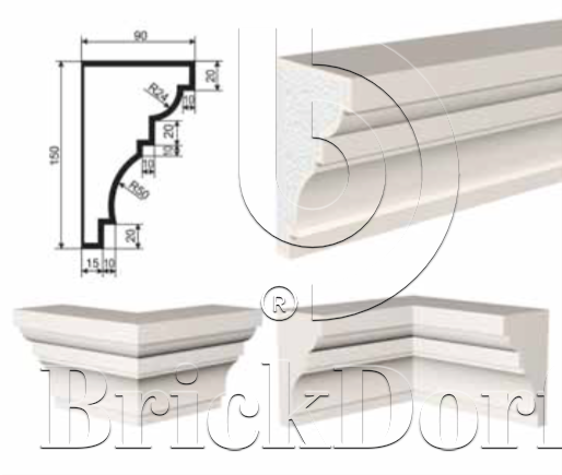 Эта лепнина эластична, без проблем монтируется на изогнутых поверхностях, хорошо переносит усадку здания и отлично окрашивается силиконовыми или акриловыми фасадными красками, не содержащими растворитель и ацетон.