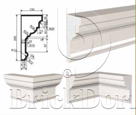 КАРНИЗ для Фасада и Интерьера - лепнина, декор из пенополистирола КВ-285/2 (КС-108) 285*130*2000 мм