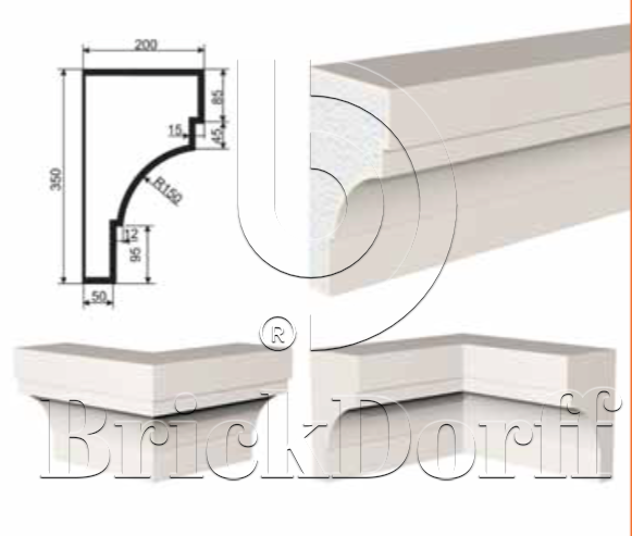 КАРНИЗ для Фасада и Интерьера - лепнина, декор из пенополистирола КВ-350/1 350*200*2000 мм
