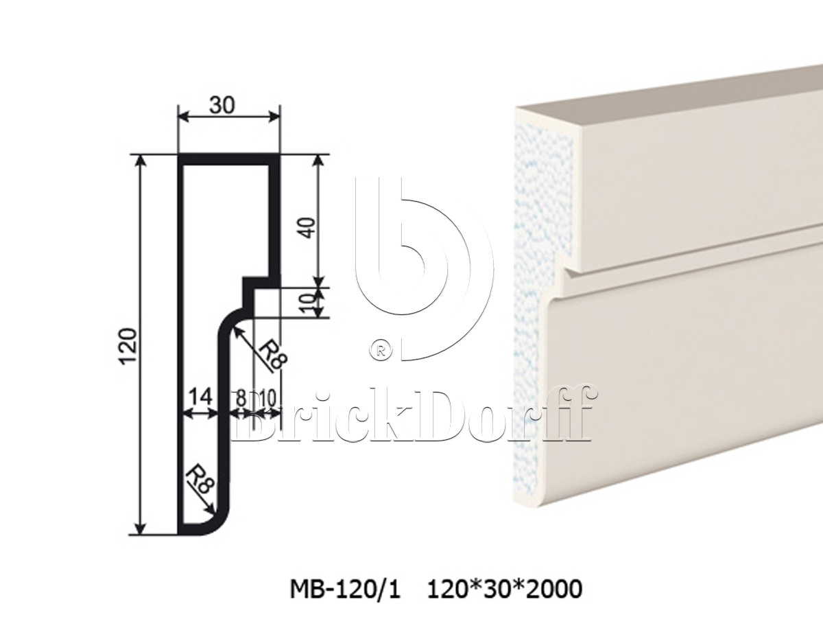 Молдинг для фасада - лепнина, декор из пенополистирола МВ-120/1 120*30*2000 мм