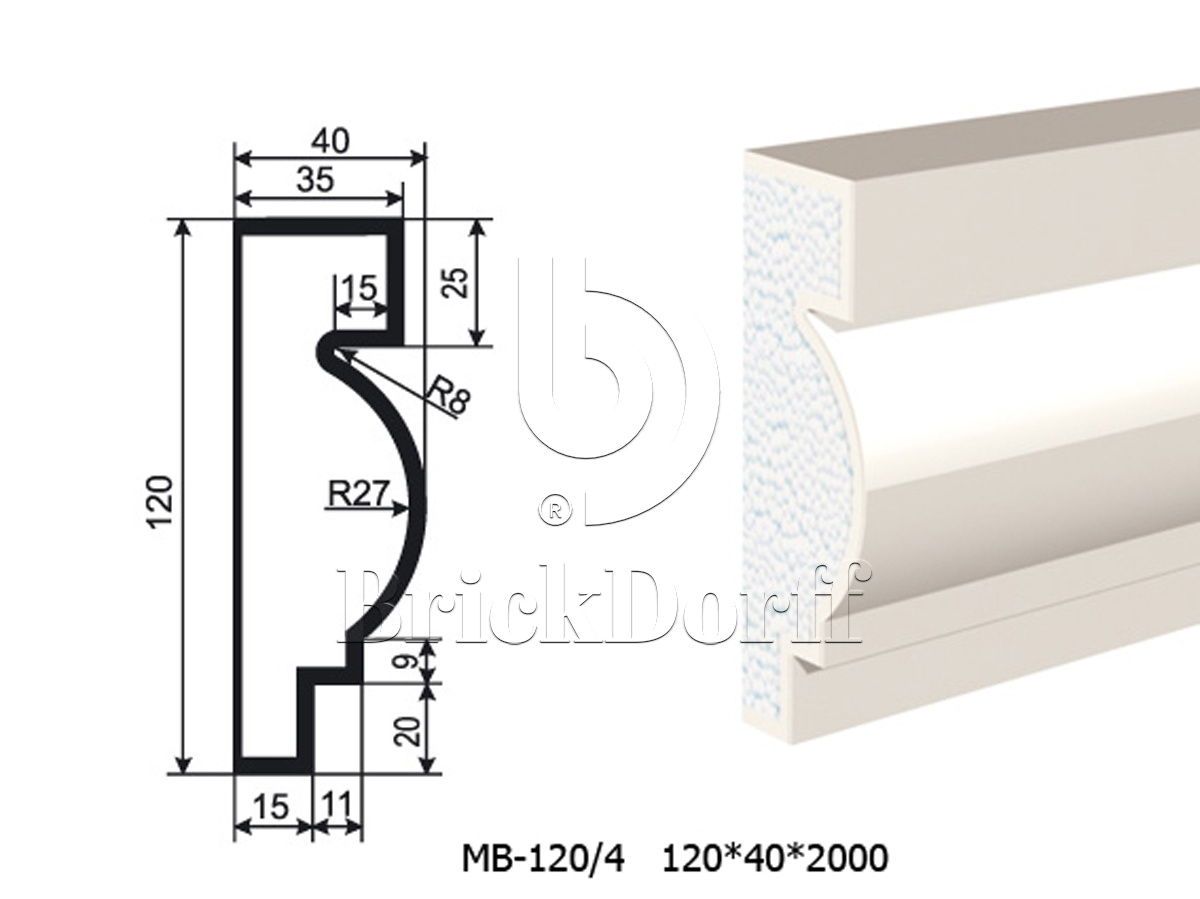 Молдинг для фасада - лепнина, декор из пенополистирола МВ-120/4 (МС-115) 120*40*2000 мм