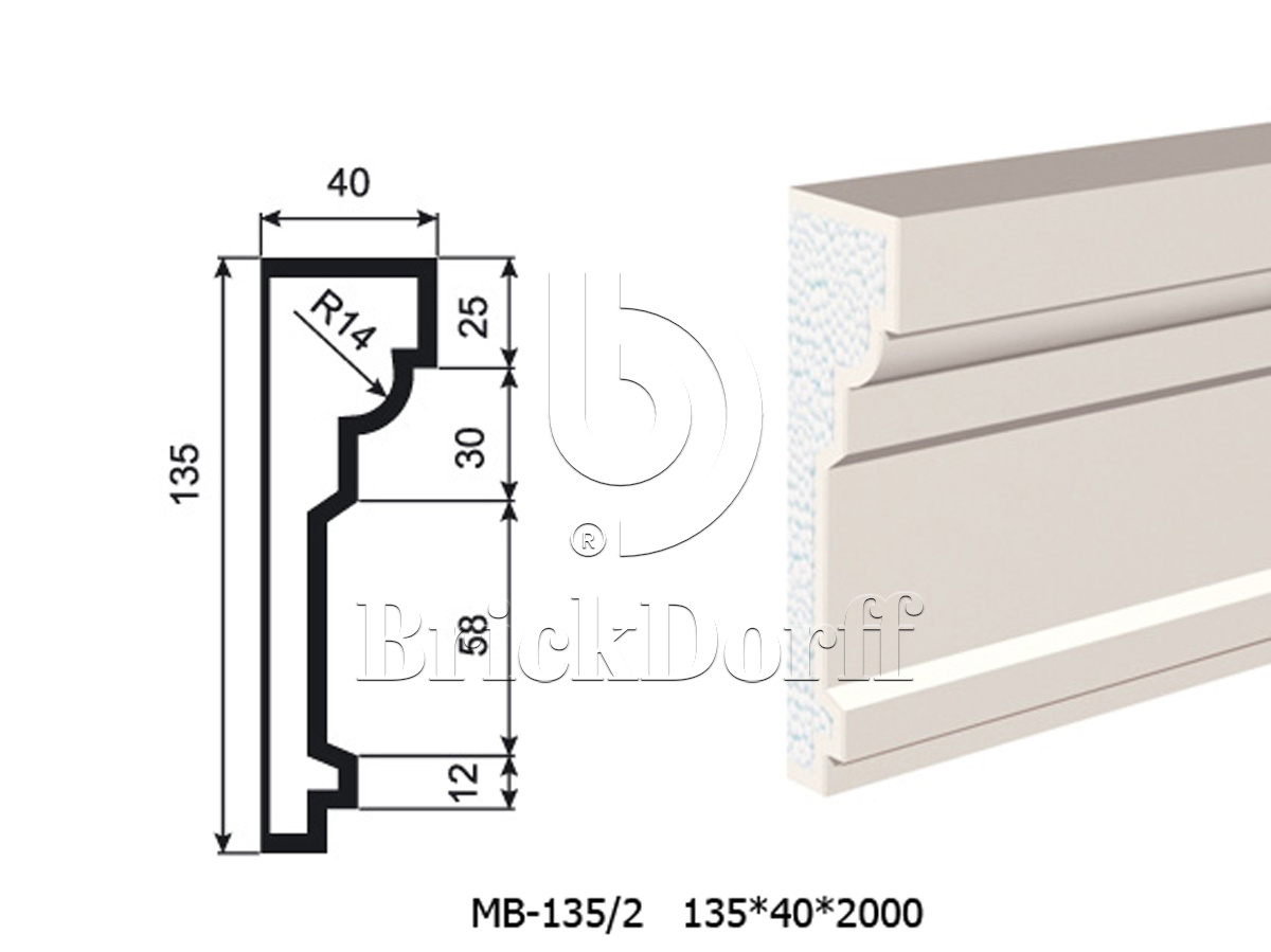 Молдинг для фасада - лепнина, декор из пенополистирола МВ-135/2 135*40*2000 мм