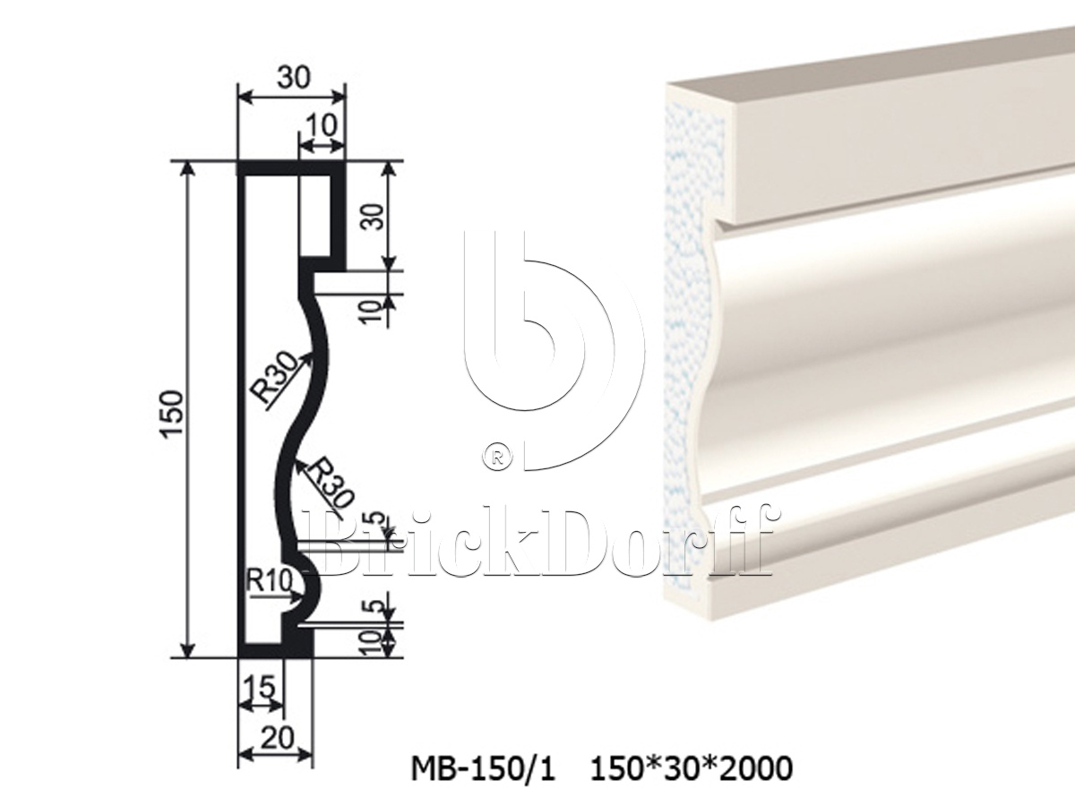 Молдинг для фасада - лепнина, декор из пенополистирола МВ-150/1 150*30*2000 мм