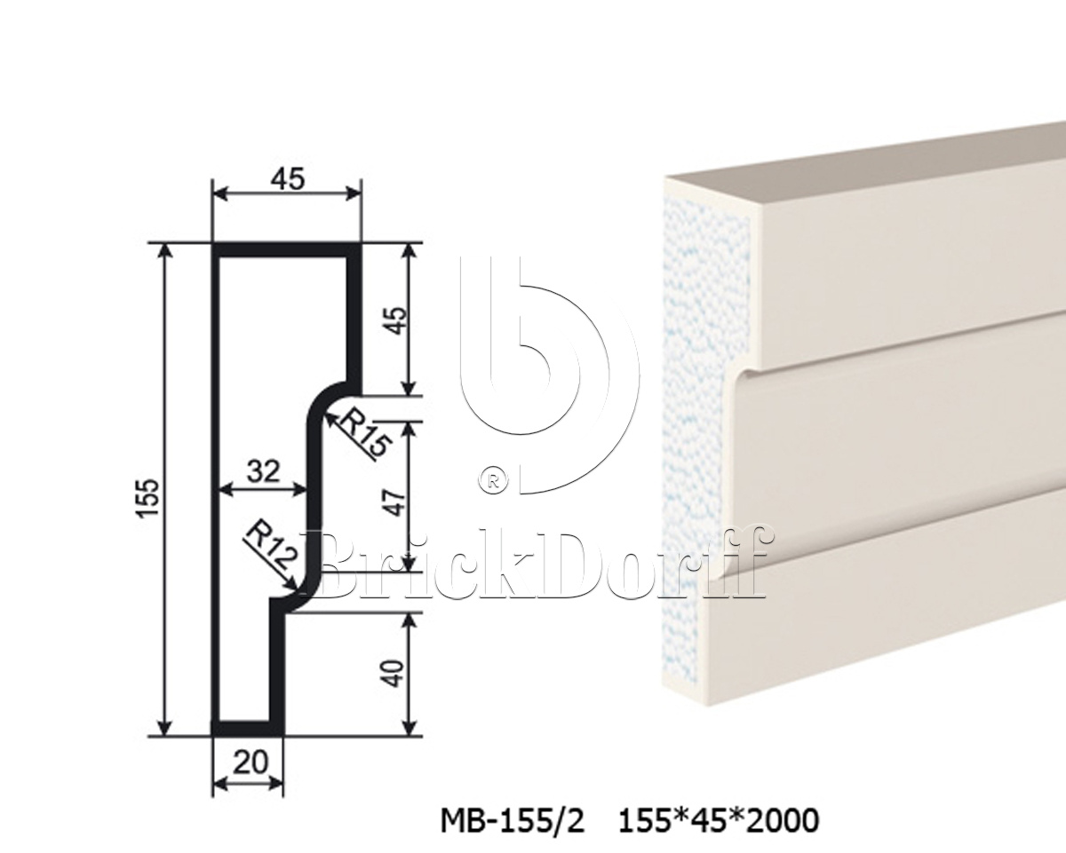 Молдинг для фасада - лепнина, декор из пенополистирола МВ-155/2 (МС-129) 155*45*2000 мм