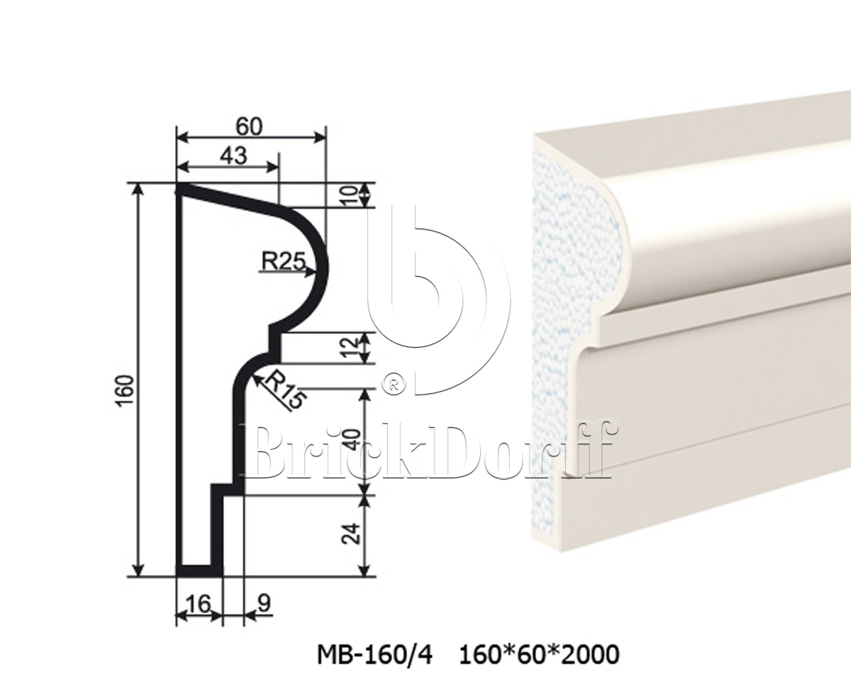 Молдинг для фасада - лепнина, декор из пенополистирола МВ-160/4 (МС-130) 160*60*2000 мм
