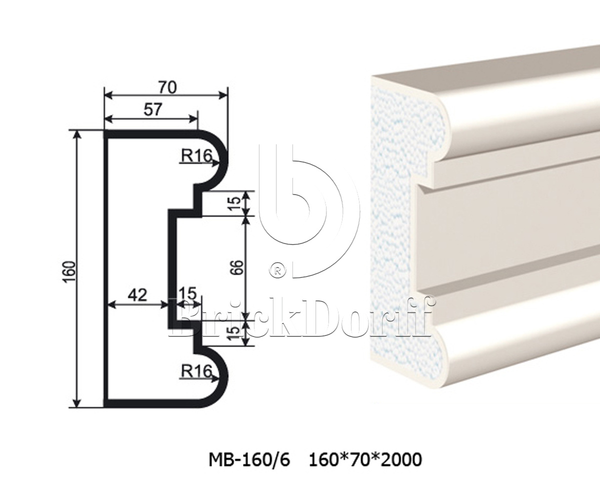 Молдинг для фасада - лепнина, декор из пенополистирола МВ-160/6 (МС-131) 160*70*2000 мм