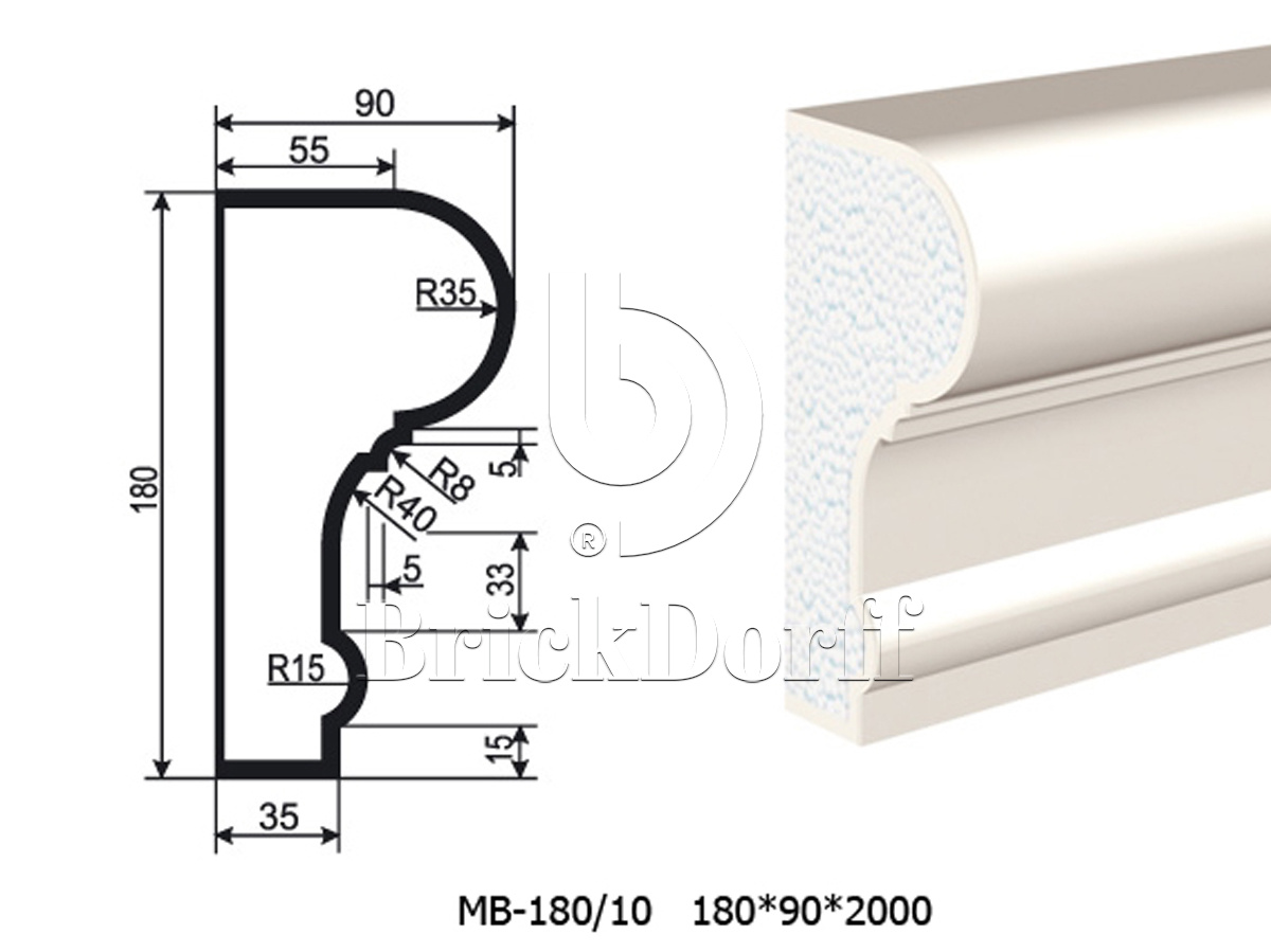 Молдинг для фасада - лепнина, декор из пенополистирола МВ-180/10 180*90*2000 мм