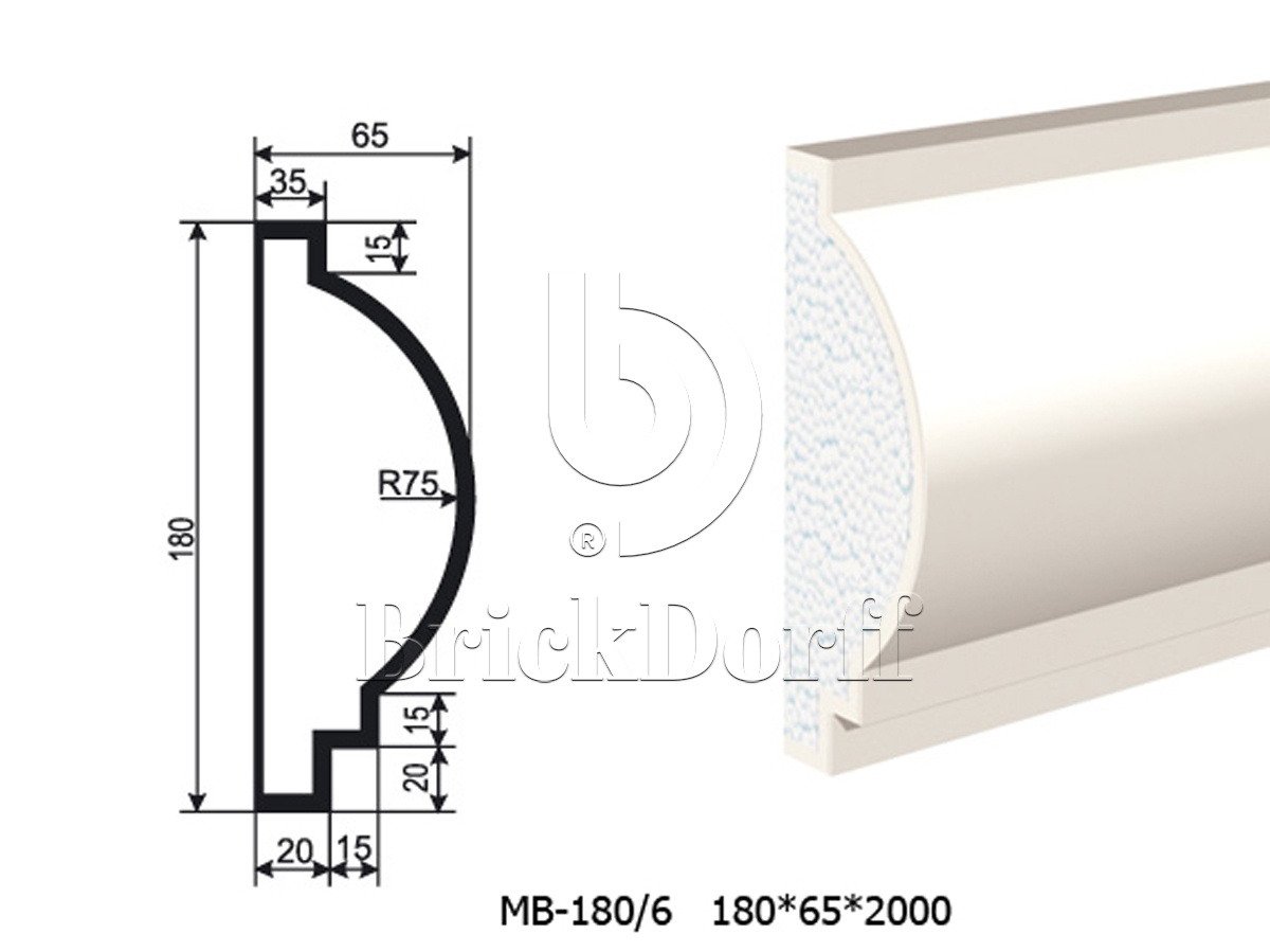 Молдинг для фасада - лепнина, декор из пенополистирола МВ-180/6 180*65*2000 мм