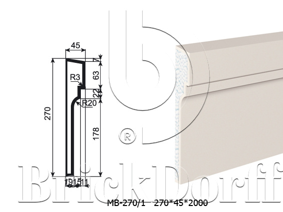 Молдинг для фасада - лепнина, декор из пенополистирола МВ-270/1 270*45*2000 мм