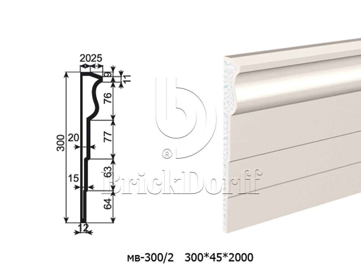 Молдинг для фасада - лепнина, декор из пенополистирола МВ-300/2 300*45*2000 мм