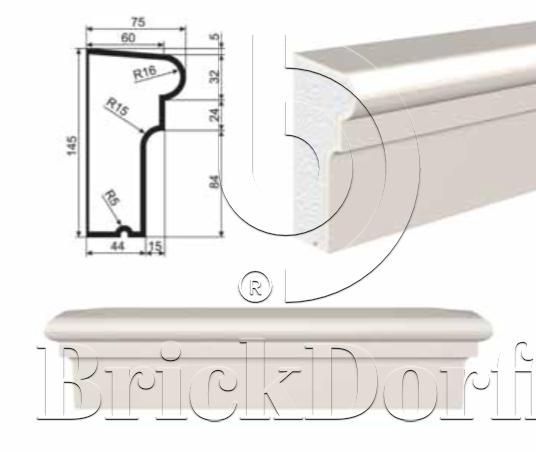 ПОДОКОННИК для Фасада и Интерьера - лепнина, декор из пенополистирола ПВ-145/2 145*75*2000 мм